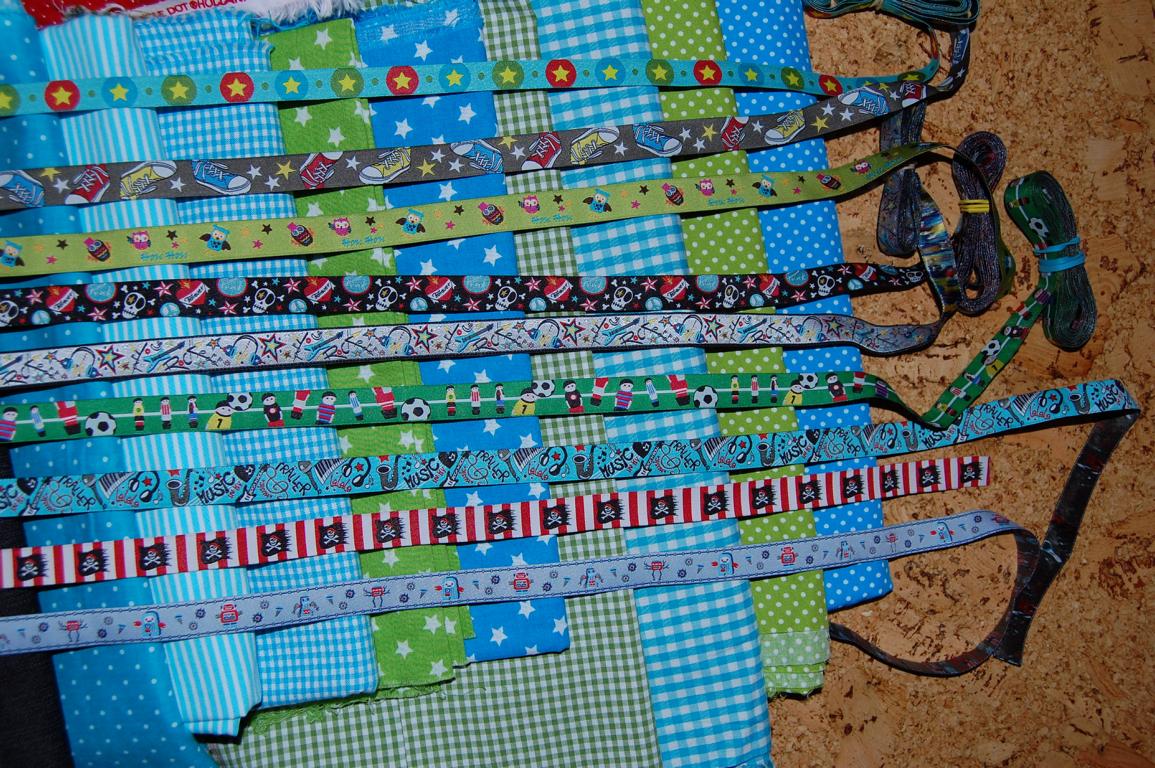 Ich habe einige meiner Stoffe und Webbänder zusammen und teilweise einzeln fotografiert, damit jeder, der einen Martinsbeutel haben möchte, in Ruhe stöbern kann.