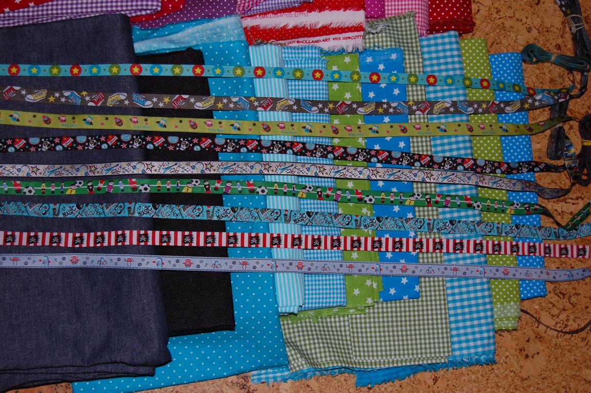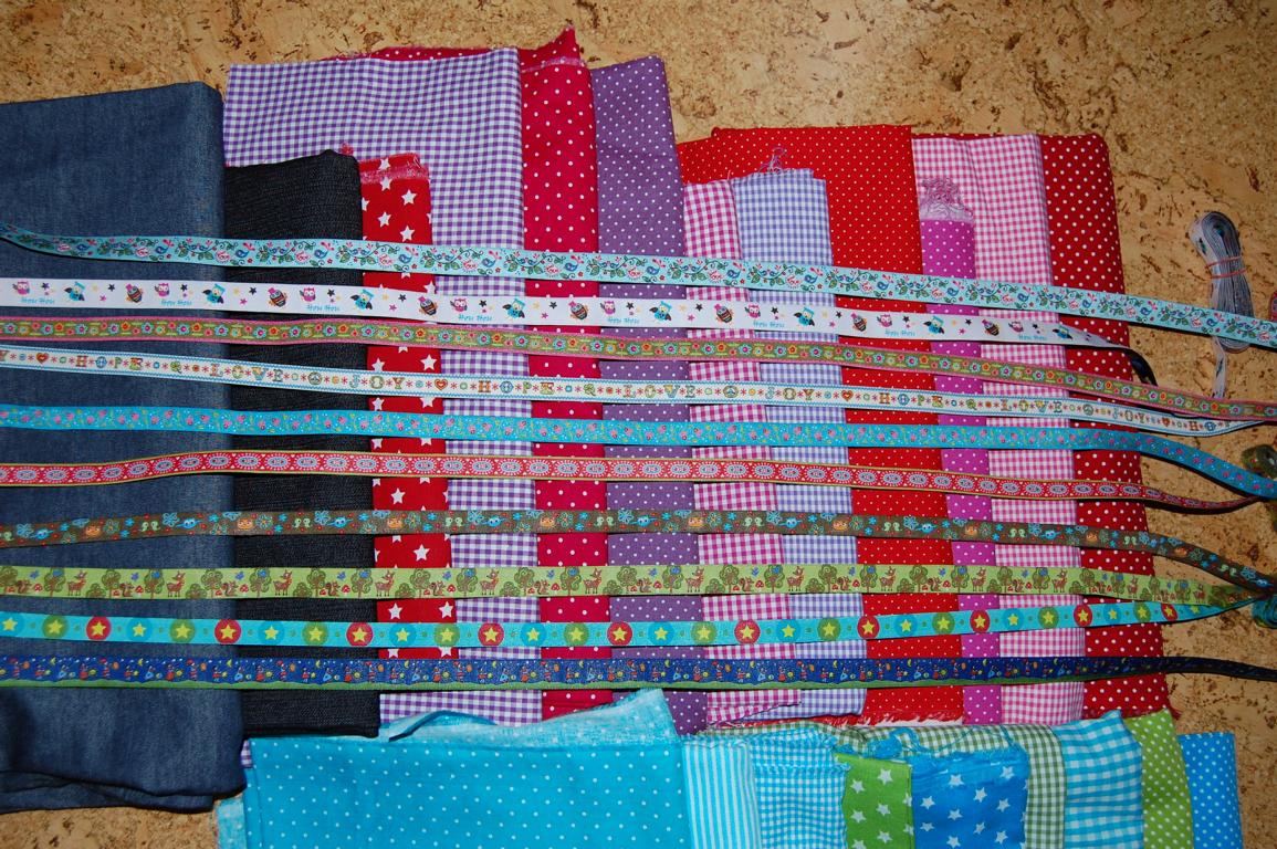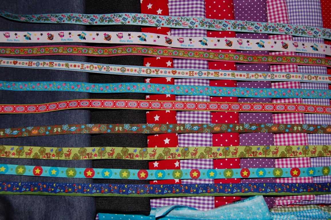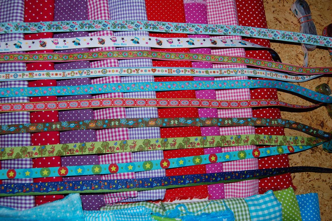 Ich habe einige meiner Stoffe und Webbänder zusammen und teilweise einzeln fotografiert, damit jeder, der einen Martinsbeutel haben möchte, in Ruhe stöbern kann.