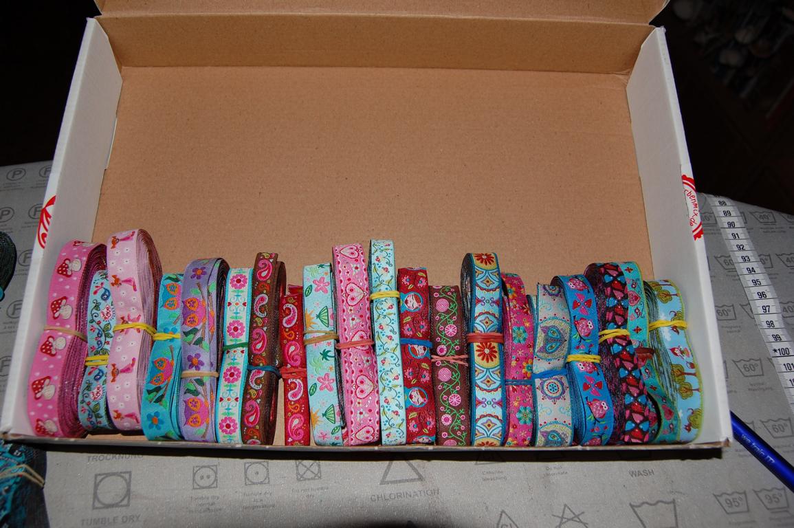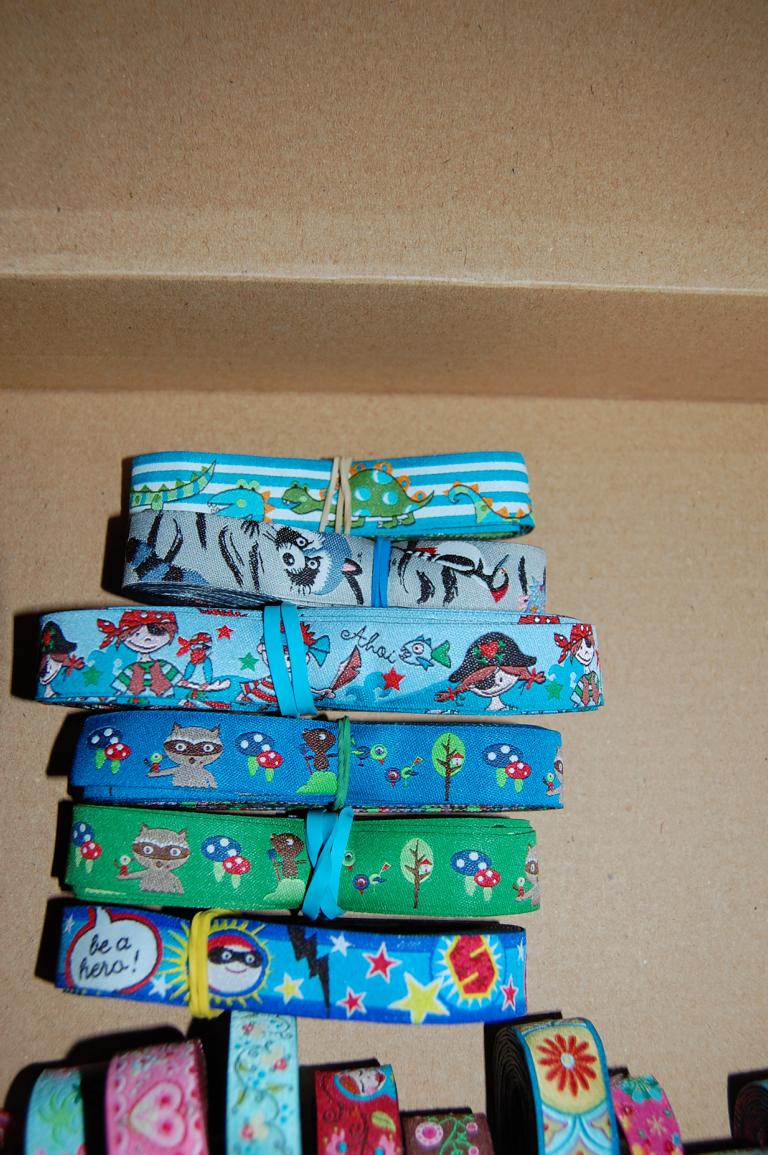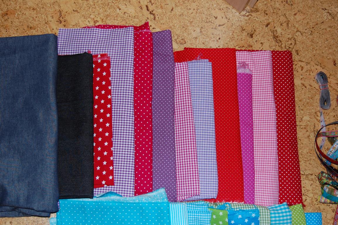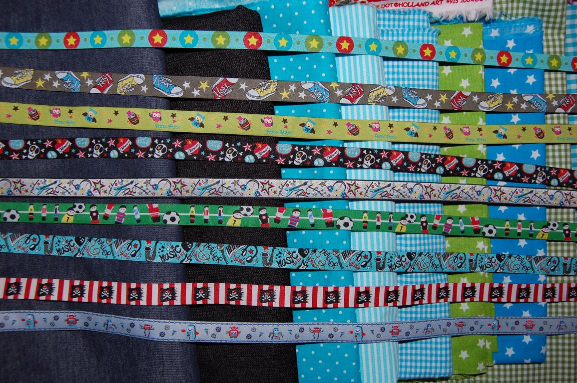 Ich habe einige meiner Stoffe und Webbänder zusammen und teilweise einzeln fotografiert, damit jeder, der einen Martinsbeutel haben möchte, in Ruhe stöbern kann.